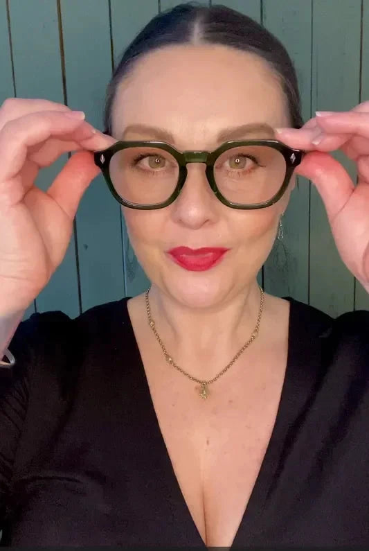 All our frames are thick acetate, which are luxe, durable, lightweight and comfy. No plastic! Unlike cheap plastic frames, acetate is strong, flexible, and less likely to break or warp over time 💪